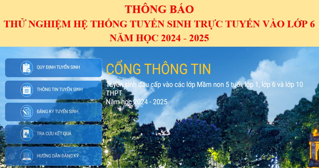 - Đây chỉ là chạy thử nghiệm hệ thống tuyển sinh trực tuyến. Kết quả tuyển sinh năm học 2024-2025 của học sinh chỉ được chấp nhận trong thời gian triển khai chính thức công tác tuyển sinh trực tuyến từ 00 giờ ngày 7/7/2024 đến 00 giờ ngày 9/7/2024.