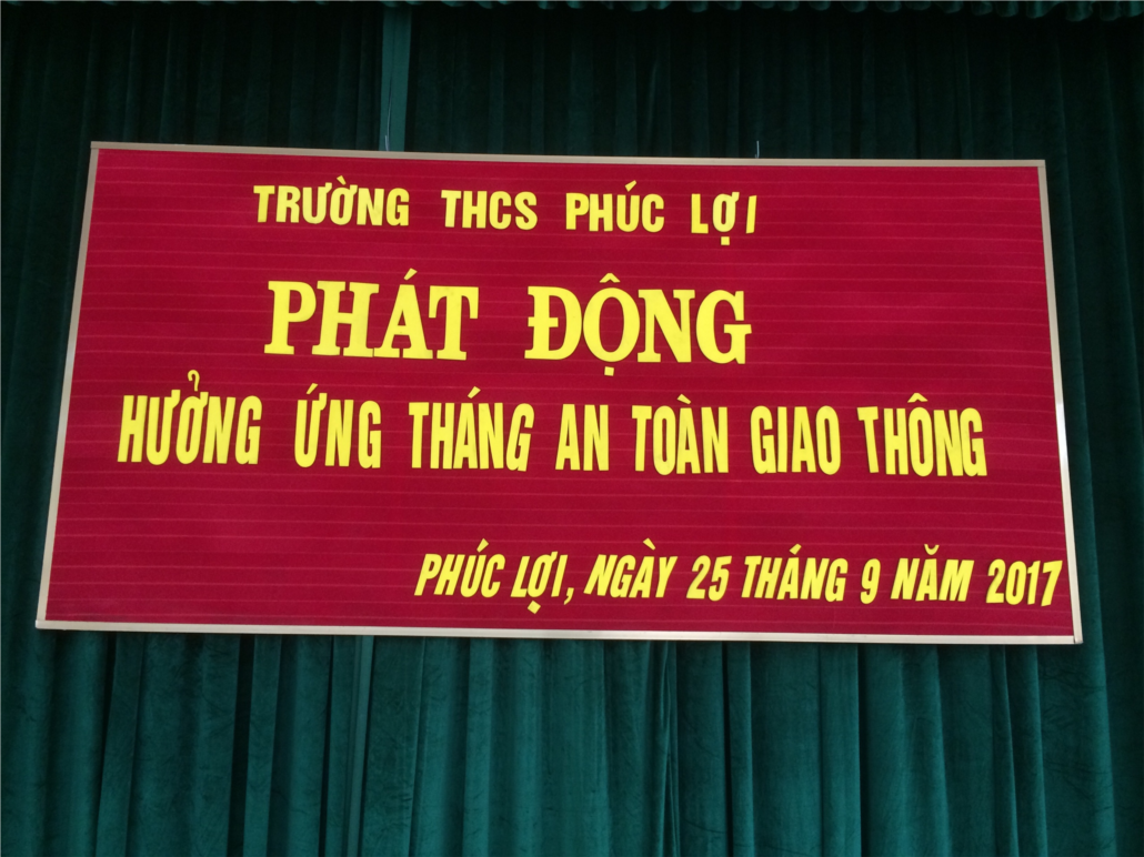 Thực hiện Kế hoạch số 596/KH-SGD&ĐT ngày 10/3/2017 của Sở GD&ĐT về kế hoạch tuyên truyền, giáo dục an toàn giao thông trong các trường học trên địa bàn thành phố Hà Nội, ngành GD&ĐT năm 2017; Thực hiện công văn số 18/KH-PGD&ĐT ngày 15/3/2017 của PGD&ĐT quận Long Biên về việc tuyên truyền, giáo dục an toàn giao thông ngành GD&ĐT quận Long Biên năm năm 2017; Căn cứ vào nhiệm vụ năm học trường THCS Phúc Lợi năm 2017; sáng ngày 25/9/2017, thầy và trò trường THCS Phúc Lợi đã long trọng tổ chức Lễ phát động Hưởng ứng tháng ATGT. Tham dự buổi lễ có đồng chí Nguyễn Mậu Minh – Bí thư chi bộ - Hiệu trưởng nhà trường, đồng chí Đặng Thị Tuyết Nhung – Phó Bí thư chi bộ - Phó hiệu trưởng nhà trường cùng toàn thể các thầy cô giáo và 643 em học sinh trường THCS Phúc Lợi.