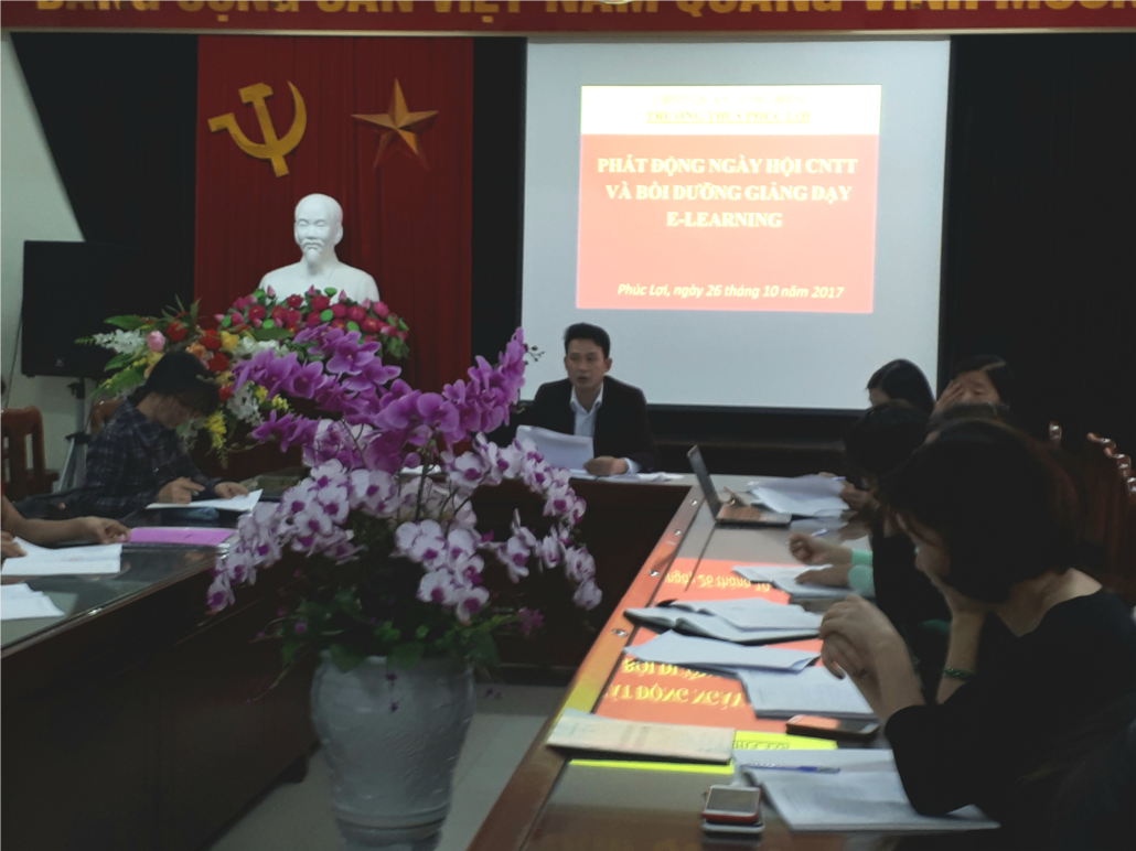 Thực hiện nhiệm vụ trọng tâm công tác năm học 2017 – 2018; thực hiện kế hoạch của Sở GD&ĐT Hà Nội; thực hiện sự chỉ đạo của UBND quận Long Biên; nhằm mục đích đẩy mạnh việc ứng dụng CNTT vào công tác giảng dạy, đồng thời chuẩn bị cho Ngày hội CNTT quận Long Biên năm học 2017 - 2018, chiều ngày 26/10/2017, trường THCS Phúc Lợi đã tổ chức phát động Ngày hội CNTT và Bồi dưỡng giảng dạy E-learning cho toàn thể cán bộ, giáo viên nhà trường.