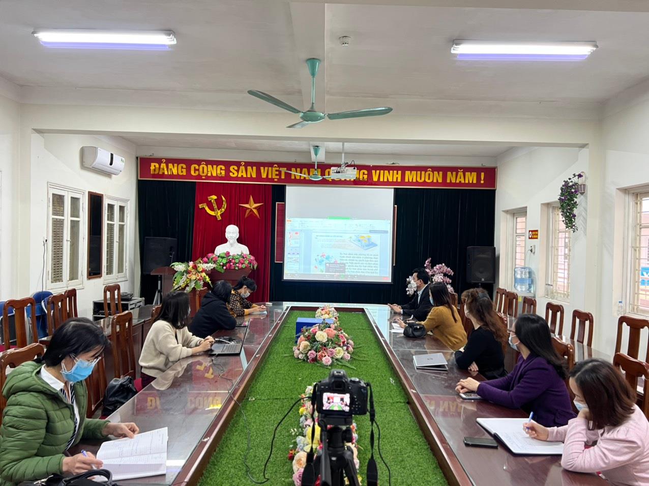 Tại điểm cầu trường THCS Phúc Lợi, tham dự buổi bồi dưỡng có thầy giáo Nguyễn Mậu Minh- Bí thư chi bộ, Hiệu trưởng nhà trường; cô giáo Đặng Thị Tuyết Nhung - Phó bí thư chi bộ, Phó hiệu trưởng nhà trường cùng toàn thể các cán bộ, giáo viên, nhân viên nhà trường.