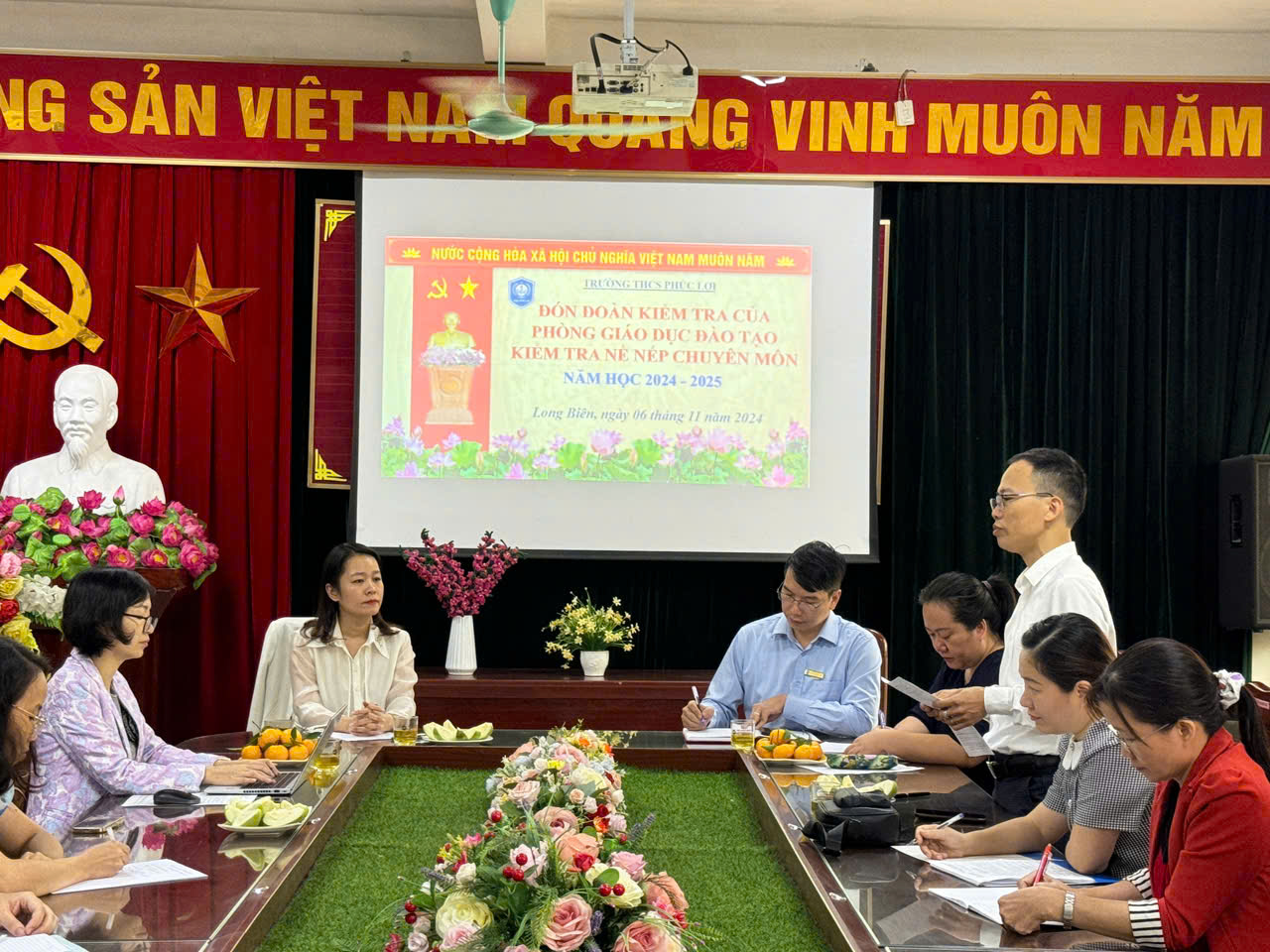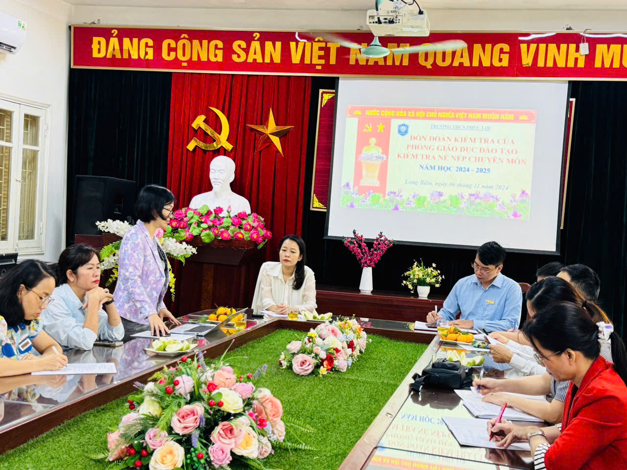 Sáng ngày 6/11/2024, trường THCS Phúc Lợi đã đón tiếp đoàn kiểm tra của Phòng GD&ĐT quận Long Biên về kiểm tra nề nếp, chuyên môn của nhà trường. Tham gia đoàn kiểm tra có đồng chí Lê Thị Ngọc Anh - Phó trưởng phòng GD&ĐT, cùng các đồng chí là chuyên viên phòng GD&ĐT Quận.