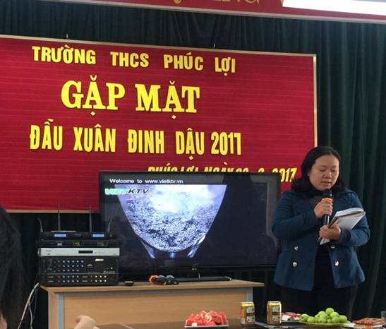 Đại diện Ban giám hiệu, đồng chí Nguyễn Mậu Minh – Bí thư chi bộ - Hiệu trưởng nhà trường đã gửi thông điệp đầu xuân cùng lời chúc năm mới dồi dào sức khỏe, hạnh phúc, thành công và vạn sự như ý đến toàn thể cán bộ, giáo viên và viên trong trường. Đồng chí cũng biểu dương, đánh giá cao sự nỗ lực phấn đấu, những thành tích mà tập thể cán bộ, giáo viên đã đạt được trong năm vừa qua; đồng thời bày tỏ hy vọng trong năm mới Đinh Dậu 2017, toàn thể nhà trường cần tiếp tục chung sức, đồng lòng, phấn đấu hoàn thành xuất sắc nhiệm vụ được giao, từ đó từng bước khẳng định vị thế, thương hiệu của trường THCS Phúc Lợi.
