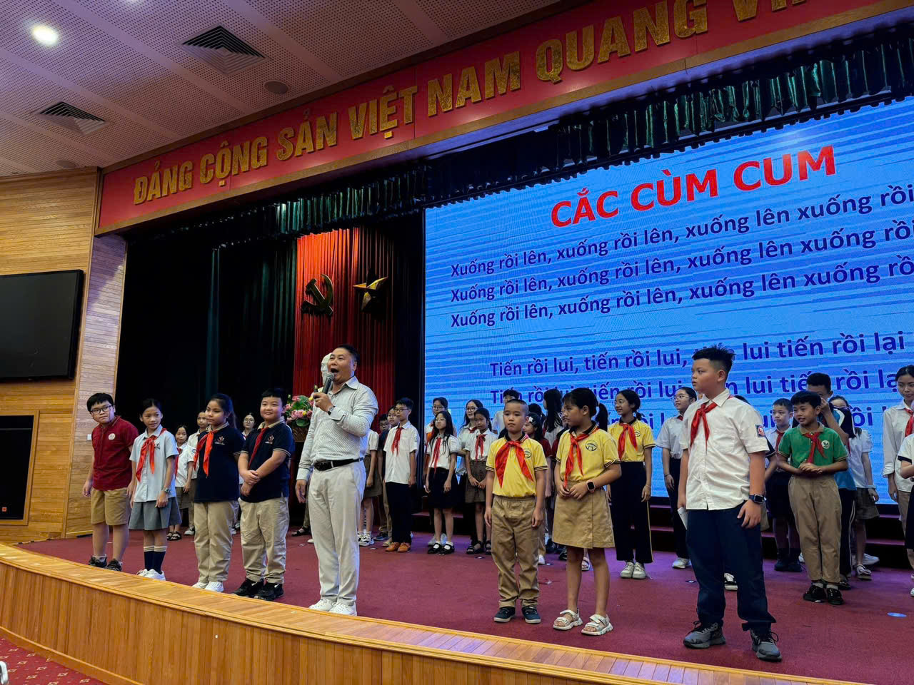 🌈Tại chương trình, các em học sinh được đồng chí Nguyễn Như Hoan – Giáo viên Khoa Kỹ năng trườngLê Duẩn - Huấn luyện viên cấp 1 Trung ương công tác Đội truyền đạt những kiến thức cơ bản kỹ năng Đội như tổ chức trò chơi, sinh hoạt tập thể, làm việc nhóm, … Lớp tập huấn diễn ra trong hơn 2 giờ đồng hồ, các em đến tham gia lớp học đúng giờ đầy đủ, nghiêm túc và vô cùng sôi nổi. Bên cạnh được bồi dưỡng học tập, lĩnh hội những kiến thức, kỹ năng nghiệp vụ công tác Đội, kỹ năng làm việc nhóm, còn được trao đổi, thảo luận, tương tác, chia sẻ với thầy và các bạn và tham gia các trò chơi vô cùng thích thú, bổ ích các em còn vô cùng vui vẻ.